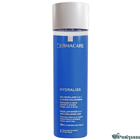 DERMACARE Hydraliss Eau Micellaire est une nouvelle eau micellaire enrichie en acide hyaluronique. Ce produit offre une multitude d’avantages pour la peau :
