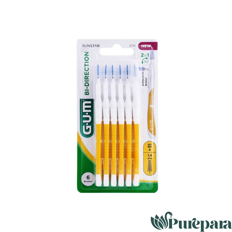 GUM Bi-Direction – Modèle : 2714 : 1,4 mm est une brossette à double position pour atteindre les espaces interdentaires antérieurs et postérieurs.