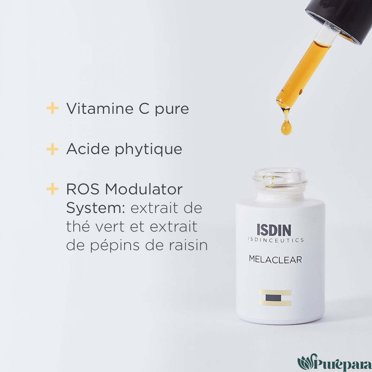 Sérum correcteur recommandé pour aider à atténuer l’aspect des taches et imperfections associées aux problèmes d’hyperpigmentation d’origines diverses.