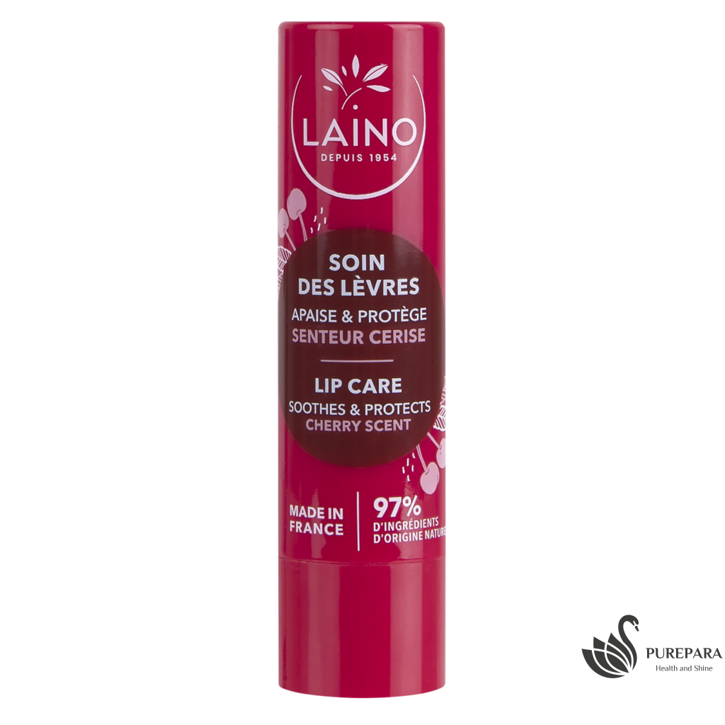 Ce stick réparateur et nourrissant Laino parfumé à la cerise est le soin indispensable pour des lèvres irrésistibles tout l’année.
