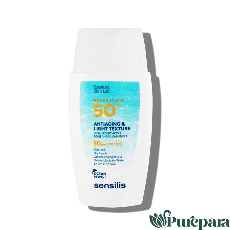 SENSILIS Water Fluid SPF50 est une très haute protection visage ultra-légère à base d’eau qui fond sur la peau et procure une délicate sensation de fraîcheur au fini invisible, soyeux et mat. Formulé avec une combinaison de crèmes solaires avec protection UVB et UVA, d’acide hyaluronique, pour son pouvoir hydratant, d’allantoïne et de Schisandra Chinesis, pour son action calmante, et de vitamine E, pour son action antioxydante.