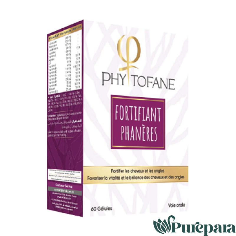 Vital Phytofane Fortifiant Cheveux Ongles – 60 Gélules Découvrez Vital Phytofane, le complément idéal pour renforcer vos cheveux et vos ongles. Formulé pour répondre aux besoins spécifiques de votre chevelure et de vos ongles, ce fortifiant cheveux est un allié précieux pour ceux qui souhaitent retrouver force et vitalité. Grâce à sa composition soigneusement élaborée, Vital Phytofane agit en profondeur pour revitaliser vos cheveux et améliorer la santé de vos ongles. Les gélules de Vital Phytofane sont faciles à intégrer dans votre routine quotidienne. En prenant ces compléments ongles, vous offrez à votre corps les nutriments essentiels nécessaires pour favoriser une croissance saine et robuste. Que vous souffriez de cheveux fins, cassants ou d’ongles fragiles, ce produit est conçu pour répondre à vos attentes. Optez pour Vital Phytofane et profitez d’une chevelure éclatante et d’ongles résistants. Ne laissez pas la fatigue ou le stress affecter votre beauté naturelle. Faites le choix d’un soin fortifiant qui vous accompagne au quotidien. Composition Biotine (Vitamine B8) : essentielle à la production de kératine, favorise des cheveux brillants et résistants. Zinc : protège les follicules pileux contre les agressions extérieures et le stress oxydatif. Méthionine et Cystine : acides aminés soufrés soutenant la croissance et la fortification des fibres capillaires. Vitamine E : puissante action antioxydante pour ralentir le vieillissement du cheveu. Levure de bière : source naturelle de vitamines B et d’acides aminés pour stimuler la croissance des cheveux. Présenté sous forme de gélules pratiques, Phytofane s’intègre parfaitement dans une routine quotidienne